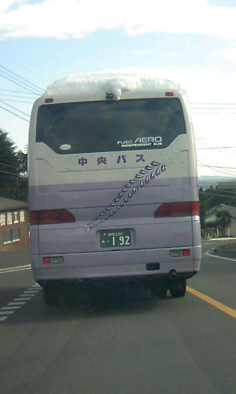 仕事の終わりに、吉岡町方面に山を下りてくると、前のバスから白いものが落ちてきた!!な・何だ!!