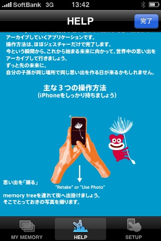 例えば、旅先で写真を撮り、思い出を送る。何年か後に同じ場所を訪れ再び「memory tree」で思い出を呼び出す。。。何だかロマンチックじゃないですか~。