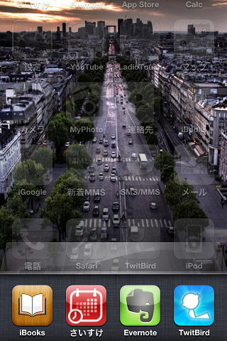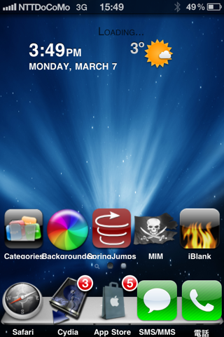 まずもって、オイラが不満に思っていたのが、ホーム画面のカスタマイズがフォルダ管理と壁紙を変更する事しか出来ない事。3Gから比べると格段の進化だった為、購入当初は満足していたが、やはりもっとオリジナリティー溢れるスマートフォンにしたい。。。「脱獄」すると、効果音から、アイコンの配置まで自由に変更が出来る。